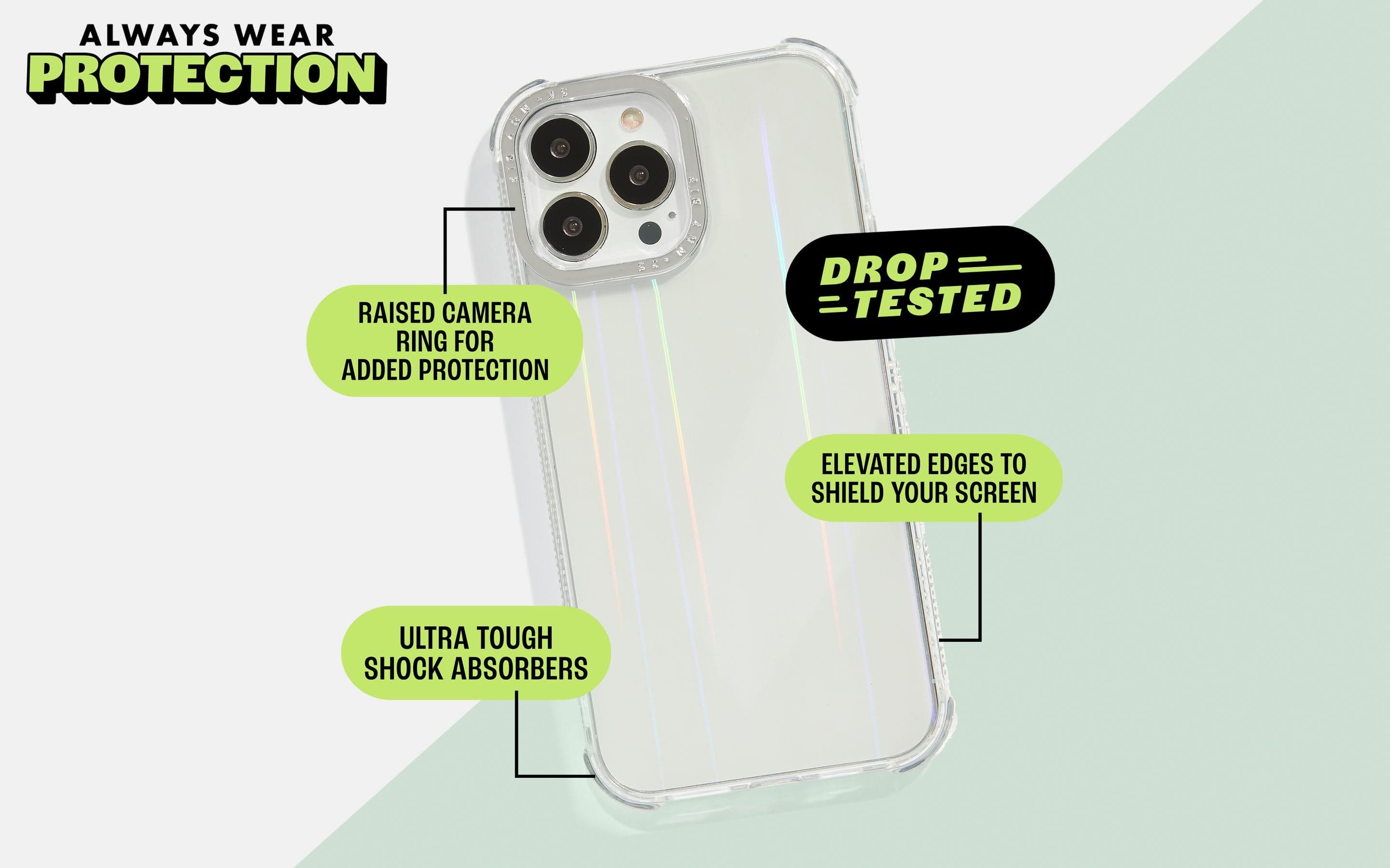 Please note: Although our phone cases are designed for all-around protection. Unfortunately, no case is indestructible and Skinnydip does not warrant that this case will protect your phone against all circumstances.
